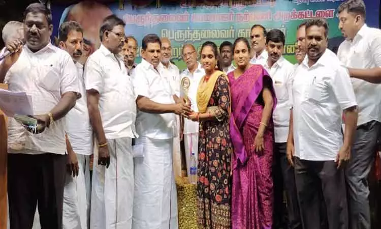 உடன்குடி சுற்றுவட்டார காமராஜர் நற்பணி மன்ற அறக்கட்டளை சார்பில் காமராஜர் பிறந்தநாள் விழா உடன்குடி மேல பஜாரில் கொண்டாடப்பட்டது. இதையொட்டி மதியம் 2 ஆயிரம் பேருக்கு பொது விரு ந்து நடந்தது. பின்னர் இரவில் நடந்த விழாவிற்கு அமைப்பின் தலைவர் ராம்குமார் தலைமை தாங்கினார். நிர்வாகிகள் நடராஜன், சிவசுப்பிரமணியன், விஜயகுமார் ஆகியோர் முன்னிலை வகித்தனர். உடன்குடி பேரூராட்சி துணை தலைவர் சந்தையடியூர் மால் ராஜேஷ் வரவேற்றார். சிறப்பு விருந்தினராக அமைச்சர் அனிதா ஆர்.ராதாகிருஷ்ணன் கலந்துகொண்டு காமராஜரின் வாழ்கை வரலாறு பற்றி விரிவாக பேசினார். தொடர்ந்து 10, 12-ம் வகுப்பில் முதல் மூன்று இடங்களை பிடித்த மாணவ மாணவிகளுக்கு தங்கப்பதக்கம், ஊக்கப்பரிசுகள் ஆகியவற்றை வழங்கினார்.