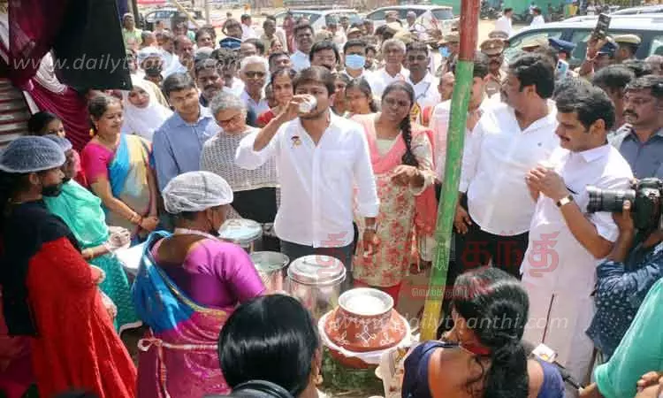 மோர், ஜூஸ் குடித்த உதயநிதி ஸ்டாலின்
