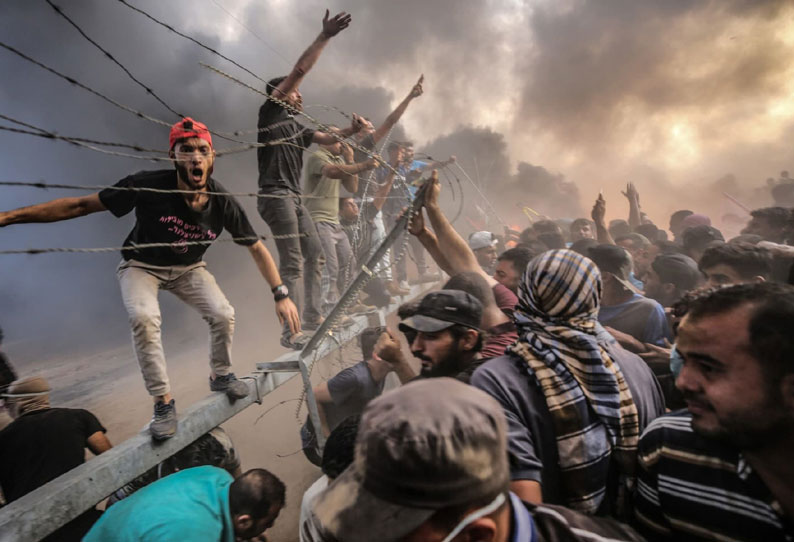அந்த வகையில் நேற்று முன்தினமும் அங்கு பாலஸ்தீனியர்கள் பல்லாயிரக்கணக்கில் திரண்டு வந்து போராட்டம் நடத்தினார்கள். அப்போது அவர்கள் டயர்களை எரித்தார்கள். பாலஸ்தீனிய கொடியை அசைத்தார்கள். இஸ்ரேல் படையினர் மீது கல்வீசி தாக்குதல் நடத்தினர்.