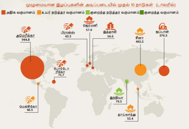பேரிடர்களால், பொருளாதார பாதிப்புக்கு உள்ளான நாடுகளின் பட்டியலில், இந்தியா முதல் 5 இடங்களுக்குள் இருப்பது, ஐநா அறிக்கை மூலம் தெரிய வந்துள்ளது.