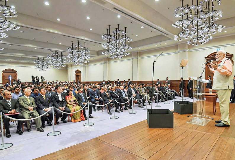 இந்திய, ஜப்பான் உறவு வலுவாகிறது இந்தியர்கள் மத்தியில் மோடி பேச்சு