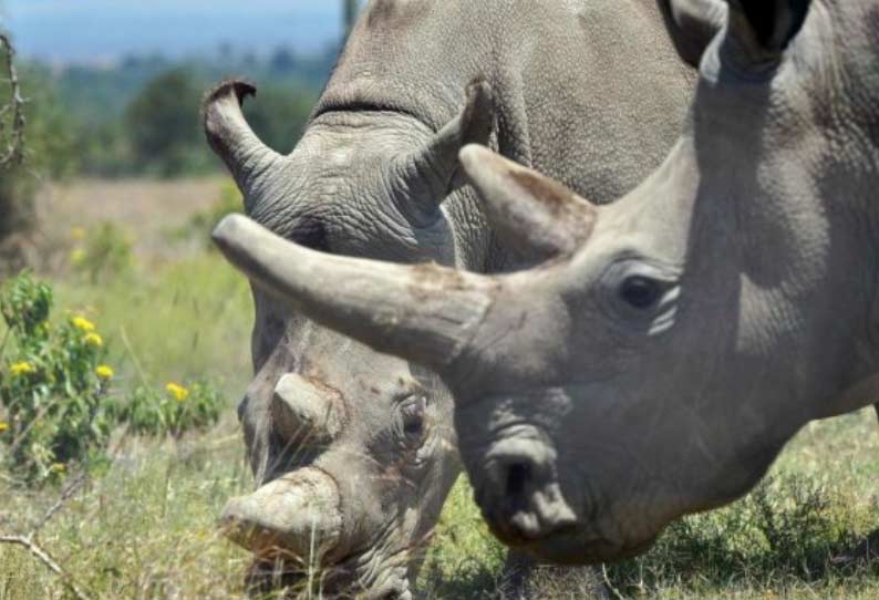 உலகின் கடைசி 2 வெள்ளை பெண் காண்டாமிருகங்கள்: செயற்கையான முறையில் கருவுற செய்த விஞ்ஞானிகள்...!