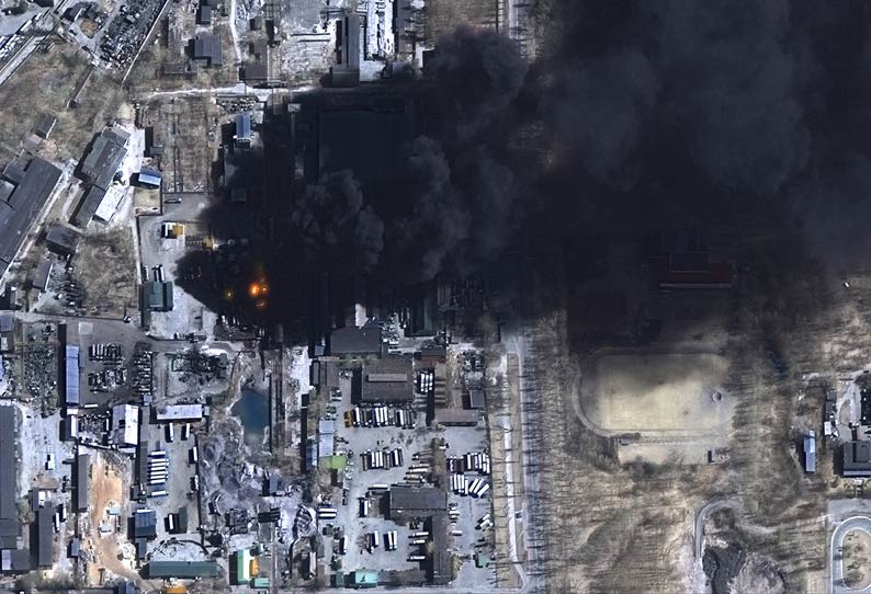 Image Courtesy: AFPஉக்ரைனில் ரசாயன ஆலை மீது ரஷிய படைகள் ஏவுகணை வீசி தாக்குதல் நடத்தின. இதனால் ஆலையில் இருந்து 5 கி.மீ. தொலைவுக்கு அமோனியா வாயு கசிந்தது.