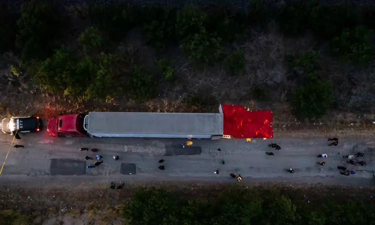 கடும் வெப்பம், தண்ணீர், உணவு இல்லை; கண்டெய்னர் லாரிக்குள் இருந்து 46 பேர் சடலமாக மீட்பு
