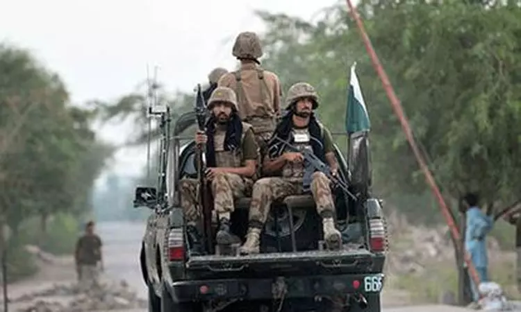 பாகிஸ்தான் நாட்டின் பலூசிஸ்தான் மாகாணம் ஈரான் எல்லையோரம் அமைந்துள்ளது. ஈரான் எல்லையோரம் அமைந்துள்ள அந்த மாகாணத்தின் கீச் மாவட்டம் ஜல்ஜி செக்டார் பகுதியில் பாகிஸ்தான் பாதுகாப்பு படையினர் இன்று ரோந்து பணியில் ஈடுபட்டிருந்தனர்.