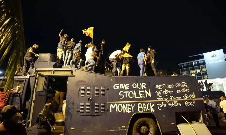இலங்கையில் நிலவும் பொருளாதார நெருக்கடி மற்றும் அத்தியாவசிய பொருட்களுக்கான தட்டுப்பாட்டால் கொதித்தெழுந்த மக்கள், அதிபர் கோத்தபய ராஜபக்சே பதவி விலக பெரும் போராட்டத்தில் ஈடுபட்டனர். நேற்று போராட்டத்தில் ஈடுபட்ட மக்கள், அதிபர் மாளிகையை கைப்பற்றினர். இதை முன்பே உளவுத்துறை மூலம் அறிந்த கோத்தபய ராஜபக்சே தனது குடும்பத்தினருடன் தப்பி ஓடினார்.