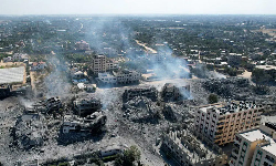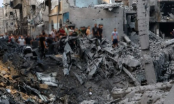 குண்டு வீச்சில் தரைமட்டமாகும் கட்டிடங்களின் இடிபாடுகளில் மக்கள் குடும்பம் குடும்பமாக உயிருடன் புதையுண்டு வருகின்றனர்.