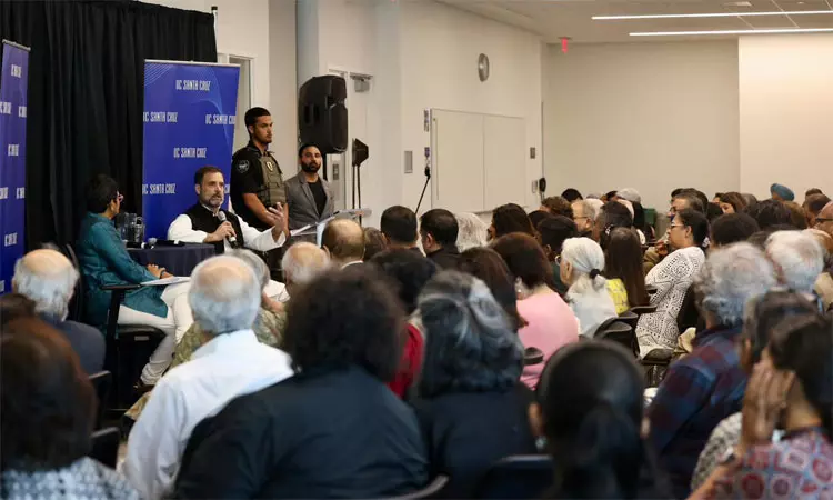 காங்கிரஸ் மூத்த தலைவர் ராகுல்காந்தி அமெரிக்காவுக்கு சுற்றுப்பயணம் மேற்கொண்டுள்ளார். அவர் நேற்று கலிபோர்னியா மாகாணத்தில் அமெரிக்க வாழ் இந்தியர்கள் சார்பில் ஏற்பாடு செய்யப்பட்ட நிகழ்ச்சியில் பங்கேற்றார்.