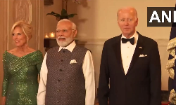 அமெரிக்க அதிபர் ஜோ பைடன், முதல் பெண்மணி ஜில் பைடன் மற்றும் பிரதமர் நரேந்திர மோடி ஆகியோர் வெள்ளை மாளிகையில் நடைபெறும் அரசு விருந்தில் பங்கேற்றுள்ளனர்.