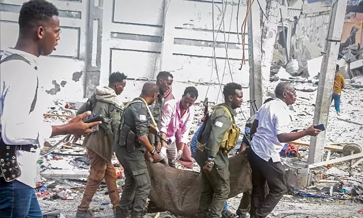 இந்த கொடூர தாக்குதலுக்கு அல்ஷபாப் பயங்கரவாத அமைப்பைச் சேர்ந்தவர்கள் தற்கொலை படை போல் செயல்பட்டு இருக்கலாம் என அந்நாட்டு அதிகாரிகள் தெரிவித்தனர்.