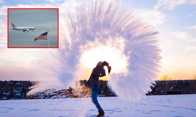 அமெரிக்காவில் கொதிக்கும் நீரை உயரே வீசி பனிக்கட்டி ஆக்கும் சவாலில் வெற்றி பெறும் வகையிலான கடுங்குளிரால் 20 கோடி பேருக்கு எச்சரிக்கை விடப்பட்டு உள்ளது.