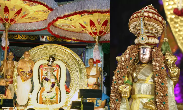 நர்த்தன கிருஷ்ணர் அலங்காரத்தில் சந்திர பிரபை வாகனத்தில் மலையப்பசாமி வீதி உலா