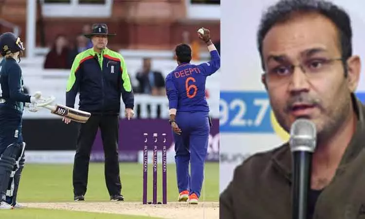 ஆட்டத்தின் 43-வது ஓவரின் 4வது பந்தை இந்திய வீராங்கனை தீப்தி ஷர்மா வீசிய போது அந்த பந்தை ப்ரேயா டேவிஸ் எதிர்கொண்டார் . எதிர் முனையில் நின்ற இங்கிலாந்து அணி வீராங்கனை சார்லீ டீன் நின்றார் .ஆனால் தீப்தி ஷர்மா பந்துவீசுவதற்குள் கிரீஸை தாண்டி பல அடிகள் நகர்ந்து முன்னே சென்றுவிட்டார் சார்லீ டீன் . இதை பயன்படுத்திக்கொண்ட தீப்தி, பந்தை வீசாமல் ஸ்டம்ப்பில் அடித்து சார்லீ டீன்-ஐ அவுட் செய்தார்.இதனை தொடர்ந்து நடுவர் ரீவியூ செய்தபிறகு ஐசிசியின் புதிய கிரிக்கெட் விதிகளின்படி அவுட் கொடுக்கப்பட்டது.