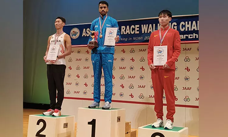 ஆசிய 20 கிலோமீட்டர் நடைபந்தய சாம்பியன்ஷிப் போட்டி ஜப்பானின் நோமி நகரில் நேற்று நடந்தது.