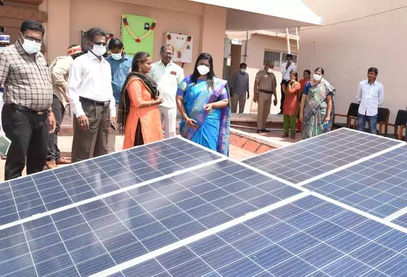 நாமக்கல் கலெக்டர் அலுவலகத்தில் 50 கிலோ வாட் திறன் கொண்ட சூரிய மின்சக்தி உற்பத்தி நிலையத்தை கலெக்டர் ஸ்ரேயா சிங் திறந்து வைத்தார்.