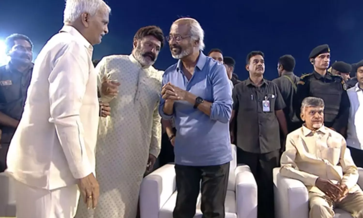 எனது நெருங்கிய நண்பரும், அரசியல் தலைவருமான சந்திரபாபு நாயுடு இருக்கும் போது, அரசியல் பற்றி பேசாமல் இருப்பது சரியல்ல. எனக்கு அவரை 30 வருடங்களாக தெரியும். சந்திரபாபு நாயுடுவை எனது நண்பர் மோகன்பாபு அறிமுகப்படுத்தினார்.