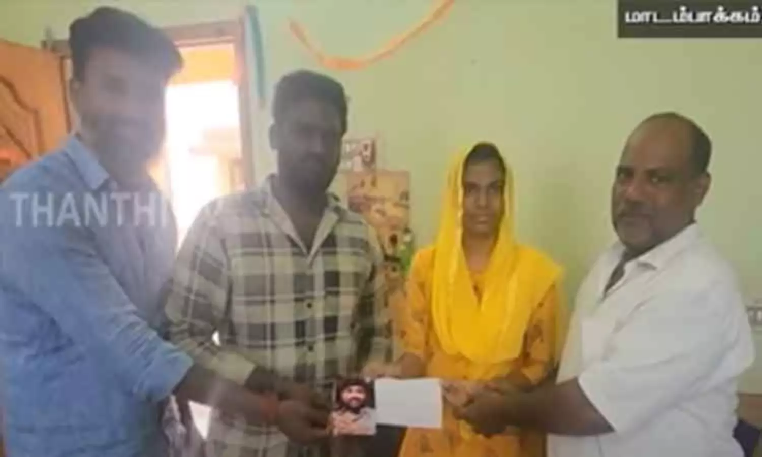 நடிகர் விஜய் சேதுபதி சார்பில் அவரது ரசிகர்கள் சென்னையைச் சேர்ந்த மாணவிக்கு கல்விக்கான உதவித்தொகையை வழங்கினர்.;