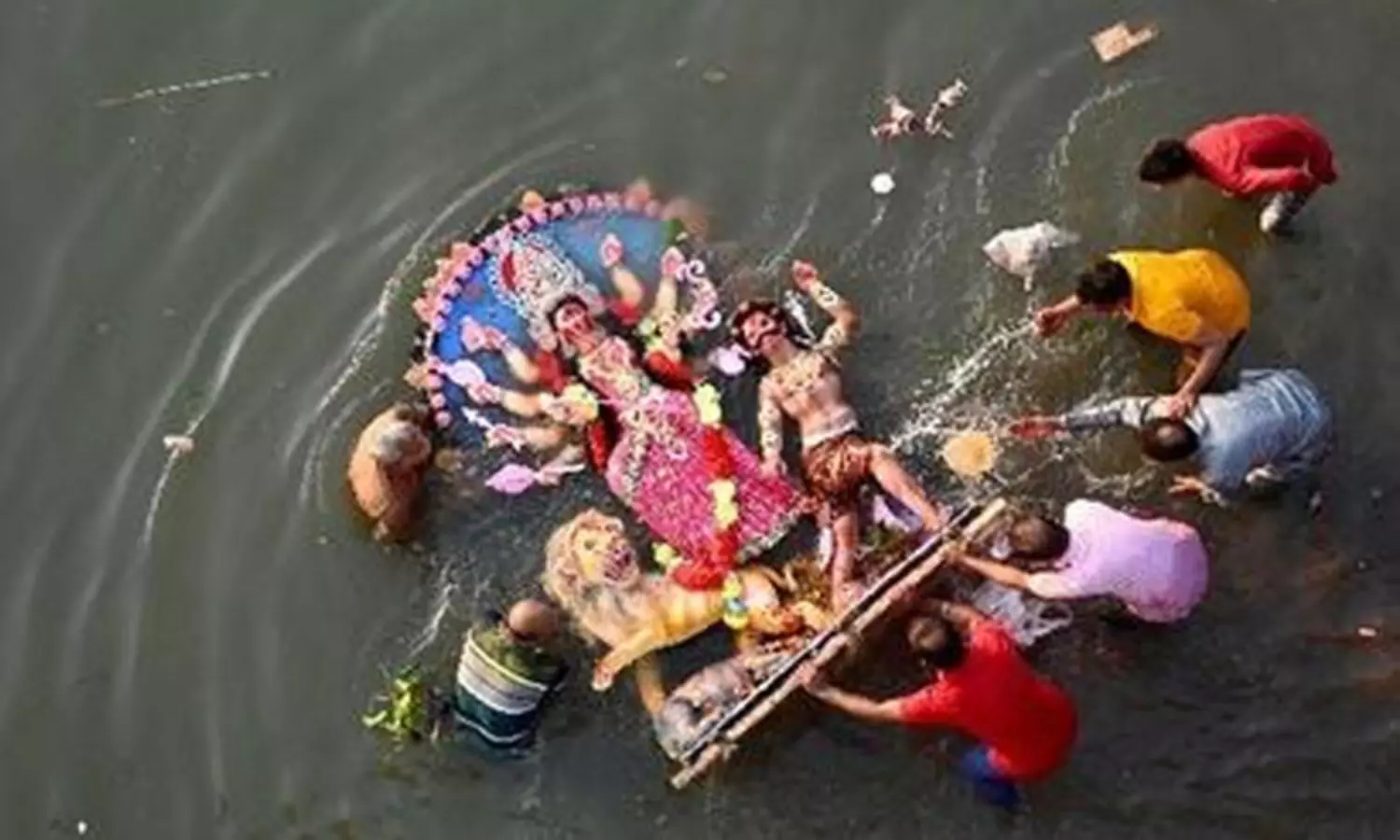 துர்கா சிலையை மழைநீர் தேங்கிய குழியில் கரைக்க சென்ற 5 பேர் உயிரிழப்பு