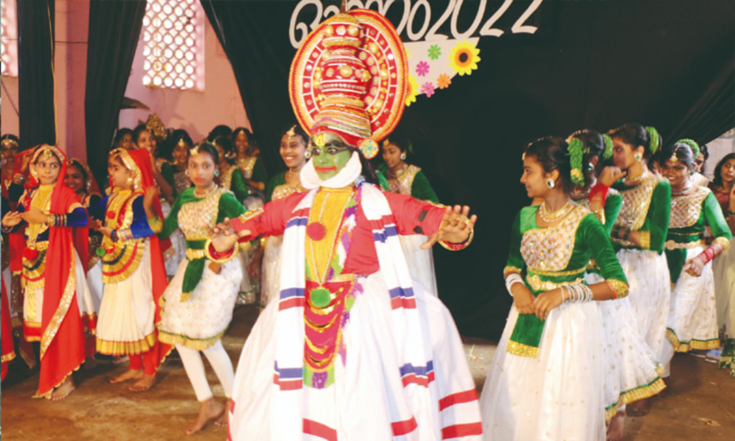 அப்போது மாணவிகளுக்கிடையே அத்தப்பூ கோலப் போட்டி நடந்தது. இதில் நூற்றுக் கணக்கான மாணவிகள் பாரம்பரிய உடையணிந்து கலந்து கொண்டனர்.