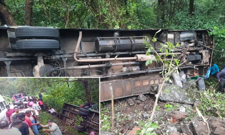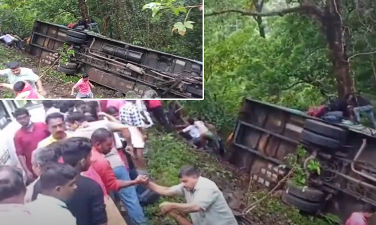 இடுக்கி மாவட்டம் நேரியமங்கலம் என்ற இடத்தில் கேரள அரசுப்பேருந்து ஒன்று 15 அடி பள்ளத்தில் கவிழ்ந்து விபத்துக்குள்ளானது.;