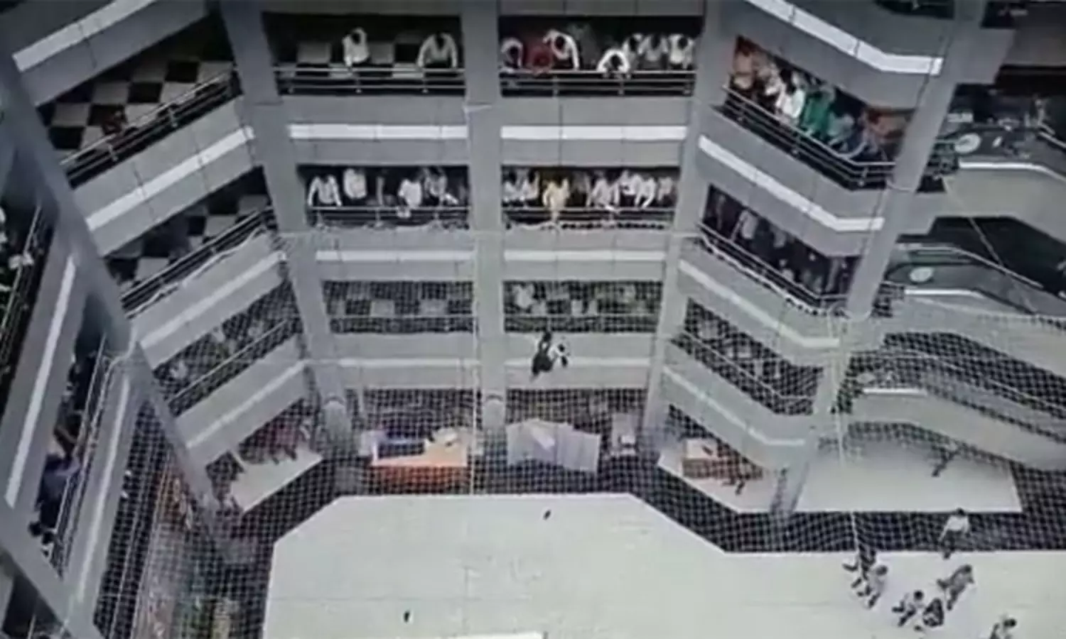 பாபு மொகாஷி (வயது 43) என்ற நபர் இன்று மாலை 3 மணியளவில் கட்டிடத்தின் ஆறாவது மாடியில் இருந்து குதித்தார். அதிர்ஷ்டவசமாக கீழே இருந்த பாதுகாப்பு வலையில் விழுந்து உயிர் தப்பினார்.