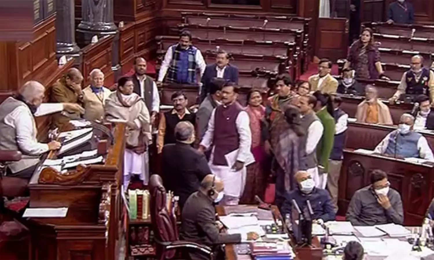 நாடாளுமன்ற மாநிலங்களவையில் நேரமில்லா நேரத்தில் எதிர்க்கட்சி உறுப்பினர்கள் மொத்தமாக சபையின் மையப்பகுதிக்கு சென்றனர். இந்திய-சீன படைகளிடையே எல்லையில் நடந்த மோதல் குறித்து விவாதம் நடத்துமாறு வலியுறுத்தினர்.