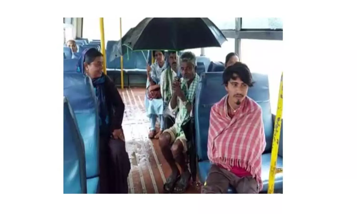 ஜன்னல் ஓரம் தண்ணீர் கொட்டியது. அப்போது பஸ்சில் இருந்த முதியவர் ஒருவர் தான் வைத்திருந்த குடையை விரித்தார். அவர் குடை பிடித்தப்படியே அரசு பஸ்சில் பயணம் செய்தார். இதனை ஒருவர் படம் பிடித்து சமூக வலைத்தளங்களில் பதிவிட்டார். இந்த படம் சமூக வலைத்தளங்களில் வைரலாகி வருகிறது.