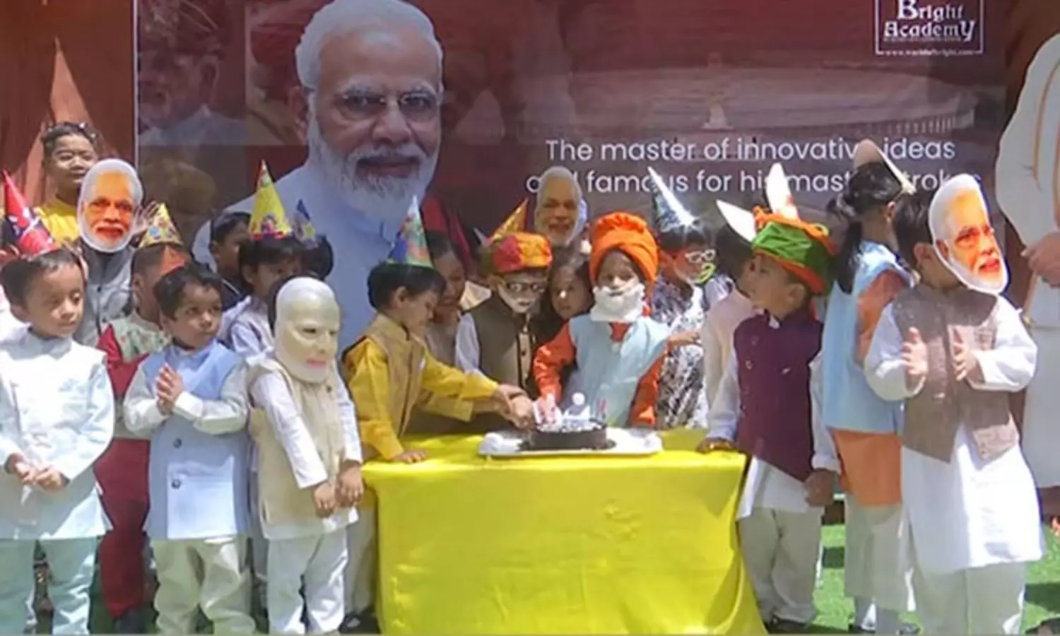 பிரதமர் மோடியின் பிறந்த நாளை தனித்துவத்துடன் கொண்டாடி மகிழ்ந்த பள்ளி குழந்தைகள்