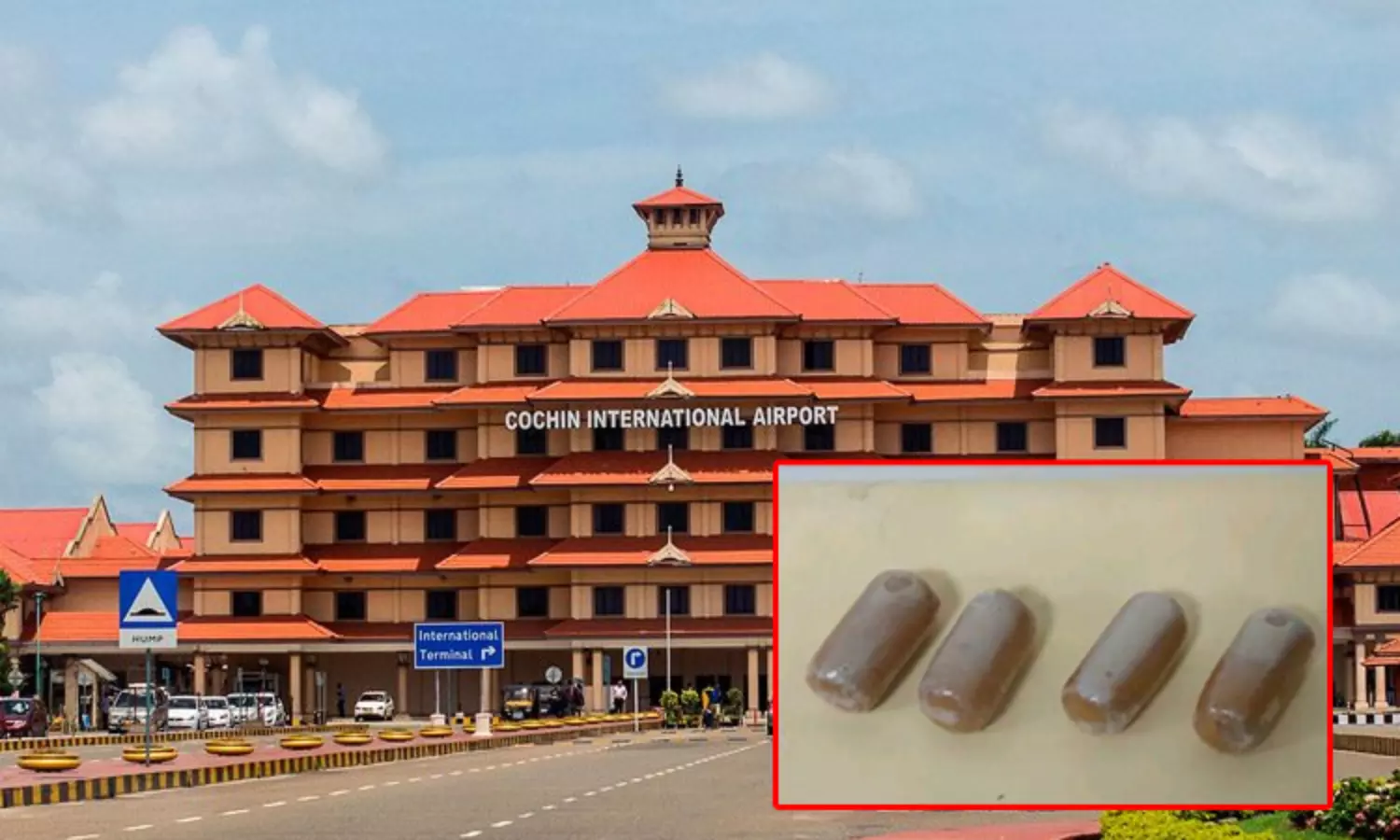 கொச்சி பன்னாட்டு விமான நிலையத்தில் உடலுக்குள் ஒளித்து கடத்திவரப்பட்ட 44.13 லட்ச ரூபாய் மதிப்புள்ள 1185.90 கிராம் எடை கொண்ட கேப்சூல் வடிவிலான 4 தங்க கட்டிகள் பறிமுதல் செய்தனர்.