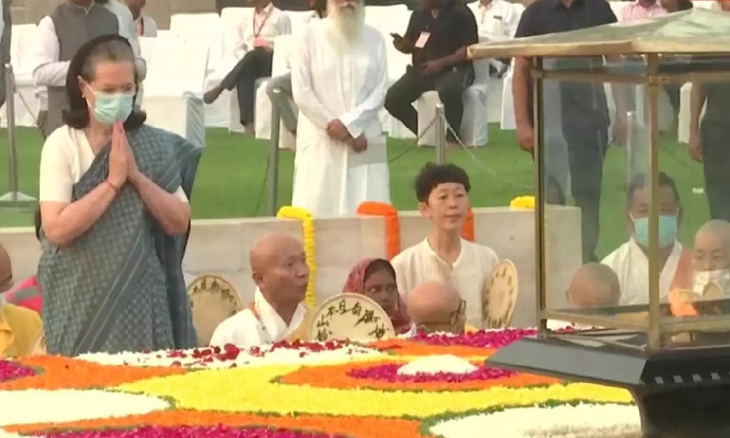 இந்நிலையில் இன்று காலை மகாத்மா காந்தி நினைவிடத்தில் காங்கிரஸ் இடைக்கால தலைவர் சோனியா காந்தி மரியாதை காந்தி ஜெயந்தியை முன்னிட்டு காங்கிரஸ் மூத்த தலைவர் மல்லிகார்ஜுன கார்கே உள்ளிட்டோரும் மலர்தூவி அஞ்சலி செலுத்தினர்.