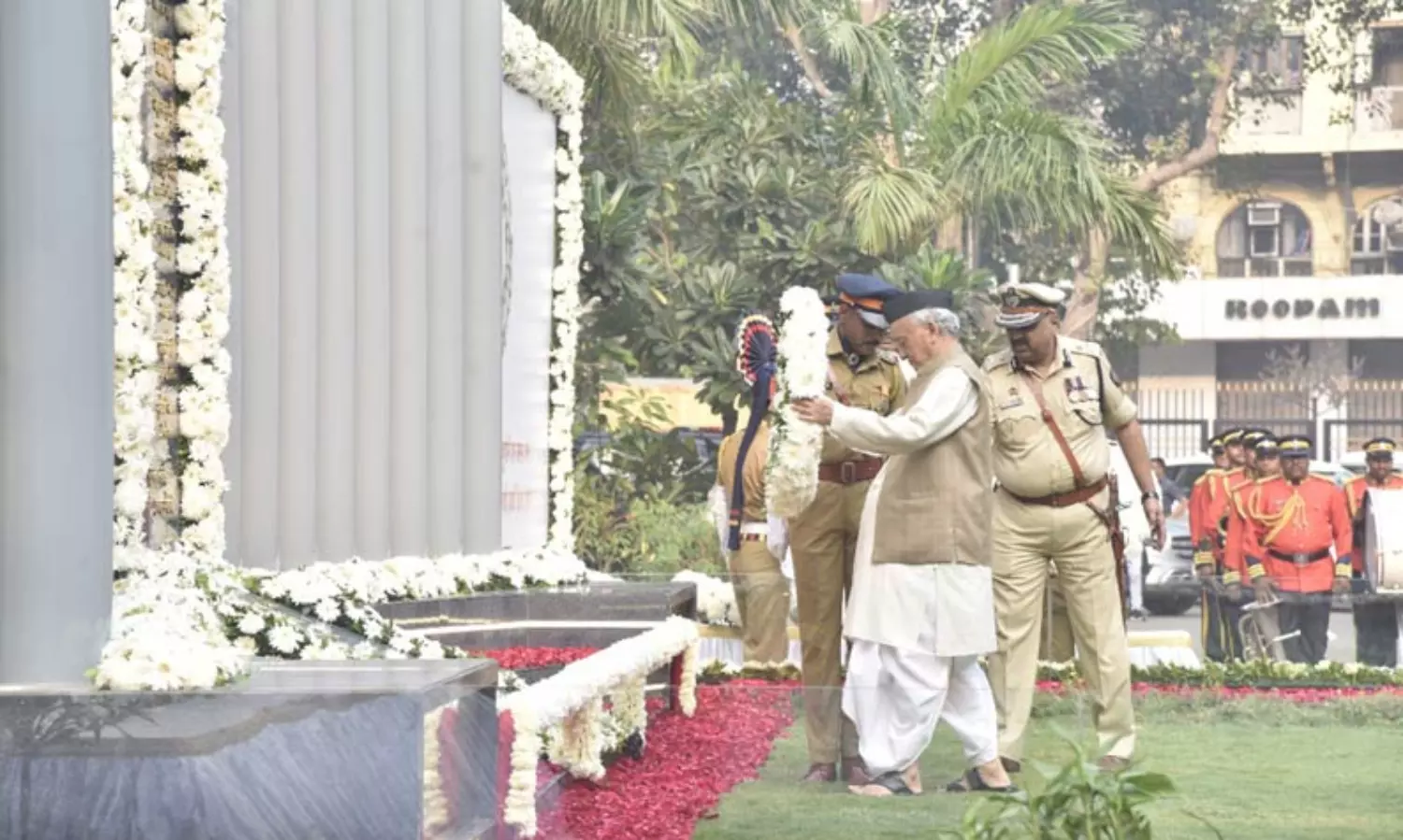 மும்பை போலீஸ் கமிஷனர் அலுவலக வளாகத்தில் உள்ள உயிரிழந்த தியாகிகள் நினைவிடத்தில் கவர்னர் பகத்சிங் கோஷ்யாரி, முதல்-மந்திரி ஏக்நாத் ஷிண்டே, துணை முதல்-மந்திரி தேவேந்திர பட்னாவிஸ் உள்ளிட்ட தலைவர்கள் மலர் வளையம் வைத்து மரியாதை செலுத்தினர்.