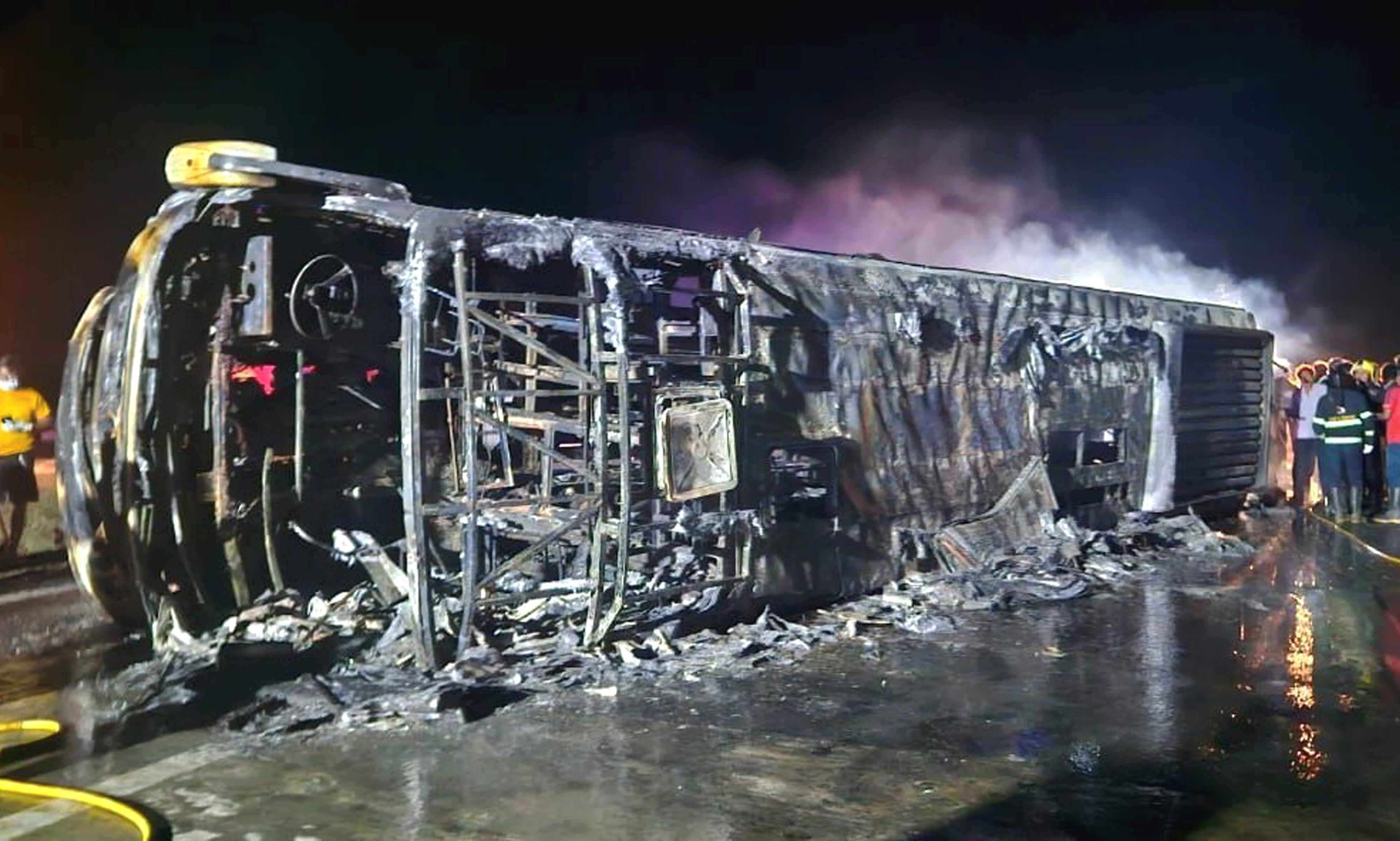 மராட்டியத்தில் நெஞ்சை பதற வைக்கும் விபத்து - சொகுசு பஸ் தீப்பிடித்து 25 பயணிகள் கருகி சாவு; உடல்களை அடையாளம் காண முடியாமல் உறவினர்கள் பரிதவிப்பு
