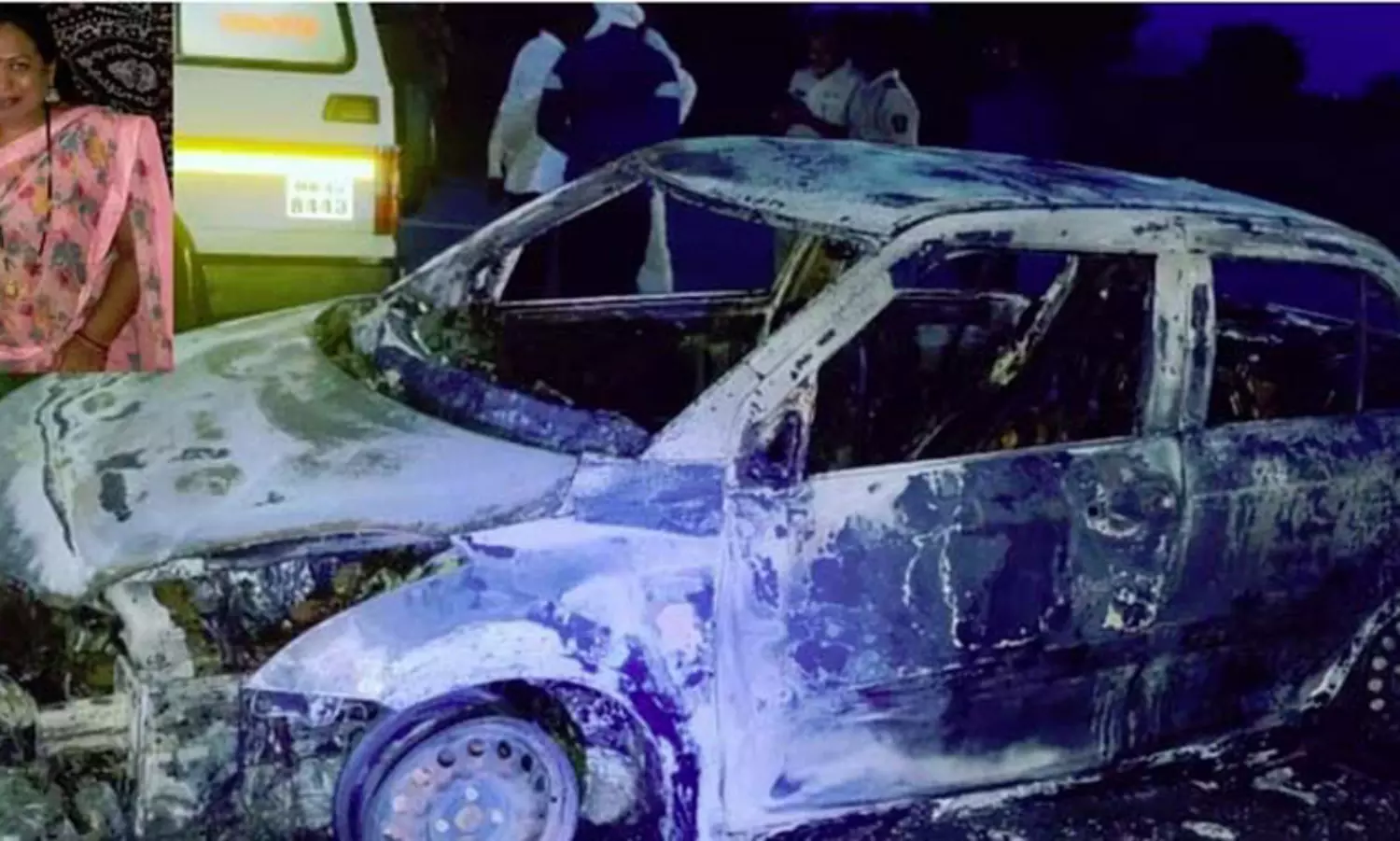 ஜால்னாவில் விபத்தில் சிக்கிய காரில் ஏற்பட்ட திடீர் தீயில் சிக்கி கணவர் கண்முன்பே மனைவி உடல் கருகி பலியானார்.