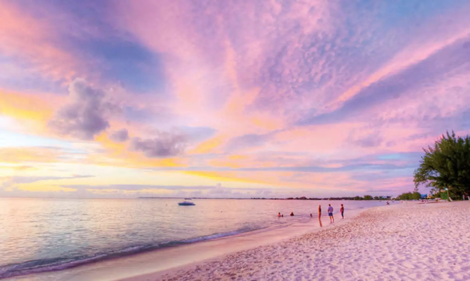 கரீபியன் தீபகற்பத்தின் கிராண்ட் கேமன் தீவுகளில் அமைந்துள்ள செவன் மைல் கடற்கரையில் பவள மணல் துகள்கள் பரவியிருக்கும். கரீபியன் தீவுகளில் சூரிய உதயம் மற்றும் அஸ்தமனத்தை பார்வையிடுவதற்கு சிறந்த கடற்கரையாக இது விளங்குகிறது. சூரிய கதிர்வீச்சுகள் கடல் பகுதி மட்டுமின்றி மணல் பகுதிகளிலும் பிரதிபலிக்கும். அப்போது நிலவும் காலநிலை வேற்று கிரகத்தில் வசிப்பது போன்ற உணர்வை ஏற்படுத்தும்.