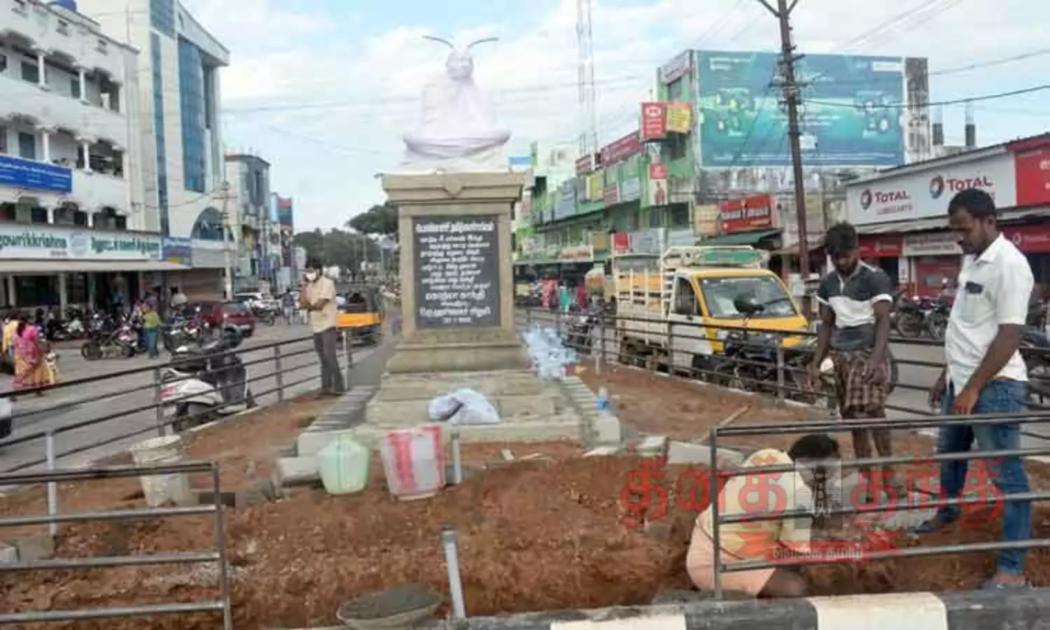 பொள்ளாச்சி ரவுண்டானாவில் காந்தி சிலை மீண்டும் அமைப்பு-வருகிற 2-ந்தேதி திறக்க முடிவு