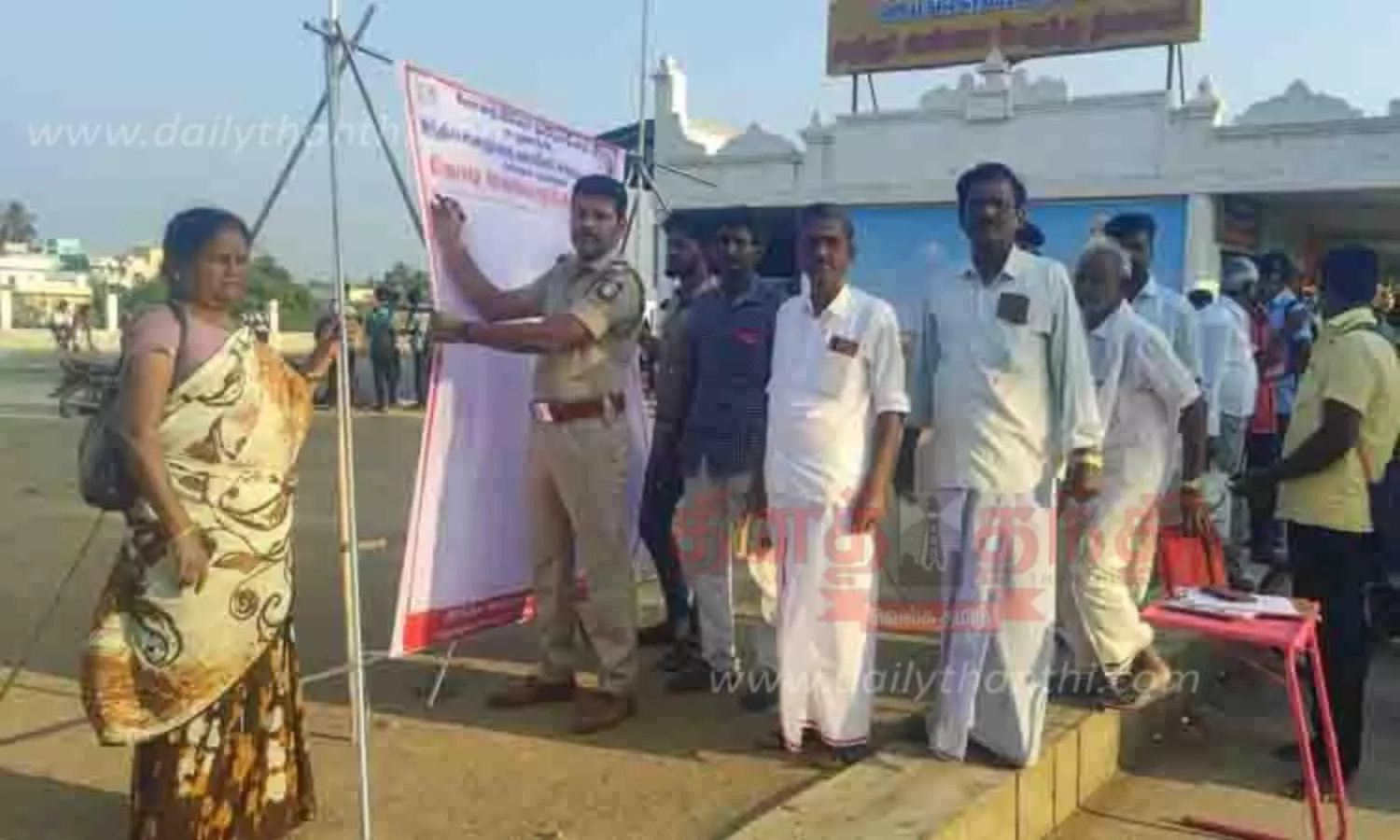 போதை பழக்கத்திலிருந்து இளைஞர்களை மீட்கவும், மதுவை ஒழிக்கவும் அரியலூர் மாவட்ட இந்திய ஜனநாயக வாலிபர் சங்க மாவட்ட தலைவர் ரவீந்திரன் தலைமையில் மாவட்ட பொருளாளர் அருண்பாண்டியன் முன்னிலையில் 1 கோடி கையெழுத்துகளை பெற்று தமிழக முதல்-அமைச்சர் மு.க.ஸ்டாலினுக்கு மனு கொடுக்க ஜெயங்கொண்டம் பஸ் நிலையத்தில் கையெழுத்து இயக்கம் நேற்று தொடங்கப்பட்டது. ஜெயங்கொண்டம் போலீஸ் இன்ஸ்பெக்டர் ஜெகநாத் கையெழுத்து போட்டு தொடங்கி வைத்தார். பஸ் நிலையத்திற்கு வந்த ஏராளமான பொதுமக்கள், பயணிகள், பள்ளி மற்றும் கல்லூரி மாணவ-மாணவிகள் ஆர்வமுடன் கையெழுத்து போட்டனர்.
