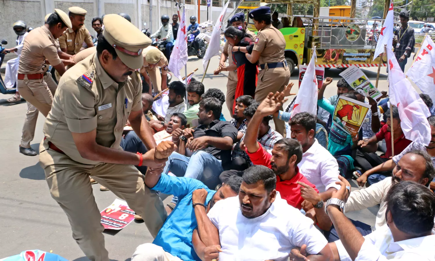 இந்த நிலையில் இந்திய ஜனநாயக வாலிபர் சங்கம் சார்பில் கலெக்டர் அலுவலகம் முன் 12 மணி நேர வேலை மசோதா நகல் எரிப்பு போராட்டம் நடத்தப்படும் என்று அறிவித்து இருந்தனர்.