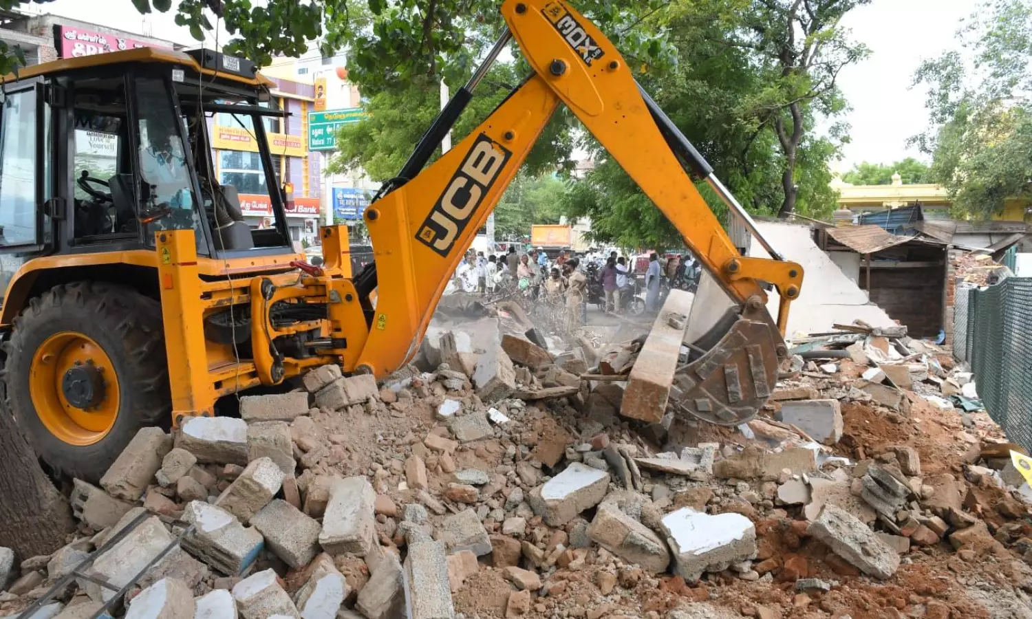 தேனியில் சாலையை ஆக்கிரமித்து கட்டப்பட்டிருந்த 13 கடைகள் இடித்து அகற்றம்
