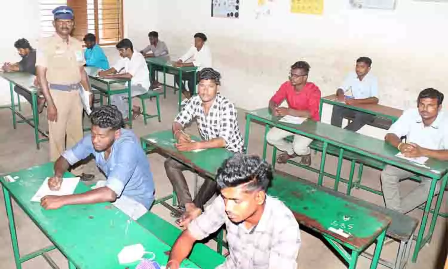 நேற்று காலை 7 மணி முதல் தேர்வு மையங்களுக்கு இளைஞர்கள் மற்றும் இளம்பெண்கள் வர தொடங்கினர். தேர்வு மையங்களுக்கு வந்த விண்ணப்பதாரர்கள் நீண்ட வரிசையில் நிற்க வைக்கப்பட்டு ஹால்டிக்கெட், ஆதார்கார்டு போன்றவற்றை சரிபார்த்து பலத்த சோதனைக்கு பிறகே அனுமதிக்கப்பட்டனர். மேலும் பேனா, ஹால்டிக்கெட் தவிர, செல்போன், டிஜிட்டல் வாட்ச் உள்ளிட்ட எலக்ட்ரானிக் பொருட்கள் எடுத்து செல்லவும் அனுமதிக்கப்படவில்லை.