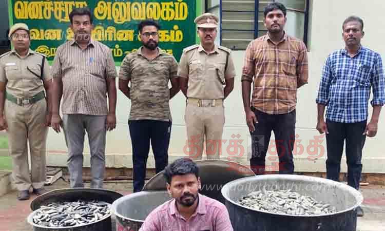 ராமநாதபுரம் வனஉயிரின காப்பாளர் பகான் ஜகதீஷ் சுதாகருக்கு கிடைத்த ரகசிய தகவலை தொடர்ந்து வனத்துறை சிறப்பு பாதுகாப்பு படையினர் திருப்பாலைக்குடி பகுதியில் தீவிர கண்காணிப்பு மற்றும் ரோந்து பணியில் ஈடுபட்டனர். அப்போது திருப்பாலைக்குடி மாரியம்மன்கோவில் தெரு பகுதியில் காளியப்பன் என்பவரின் மகன் சஞ்சய்காந்தி (வயது 43) என்பவரின் வீட்டில் கடல்அட்டை இருந்தது தெரிந்தது. சுமார் 250 கிலோ எடையுள்ள பதப்படுத்தப்பட்ட கடல் அட்டையை பறிமுதல் பாதுகாப்பு படையினர் இதுதொடர்பாக சஞ்சய்காந்தியை பிடித்து ராமநாதபுரம் வனத்துறை அலுவலகத்தில் ஒப்படைத்தனர். ராமநாதபுரம் வனச்சரகர் சுரேஷ்குமார் மேற்கண்ட கடல் அட்டைகளுடன் சஞ்சய் காந்தி மீது வழக்குபதிவு செய்து கைது செய்தார். இதன் மதிப்பு ரூ.5 லட்சம் என்று கூறப்படுகிறது.