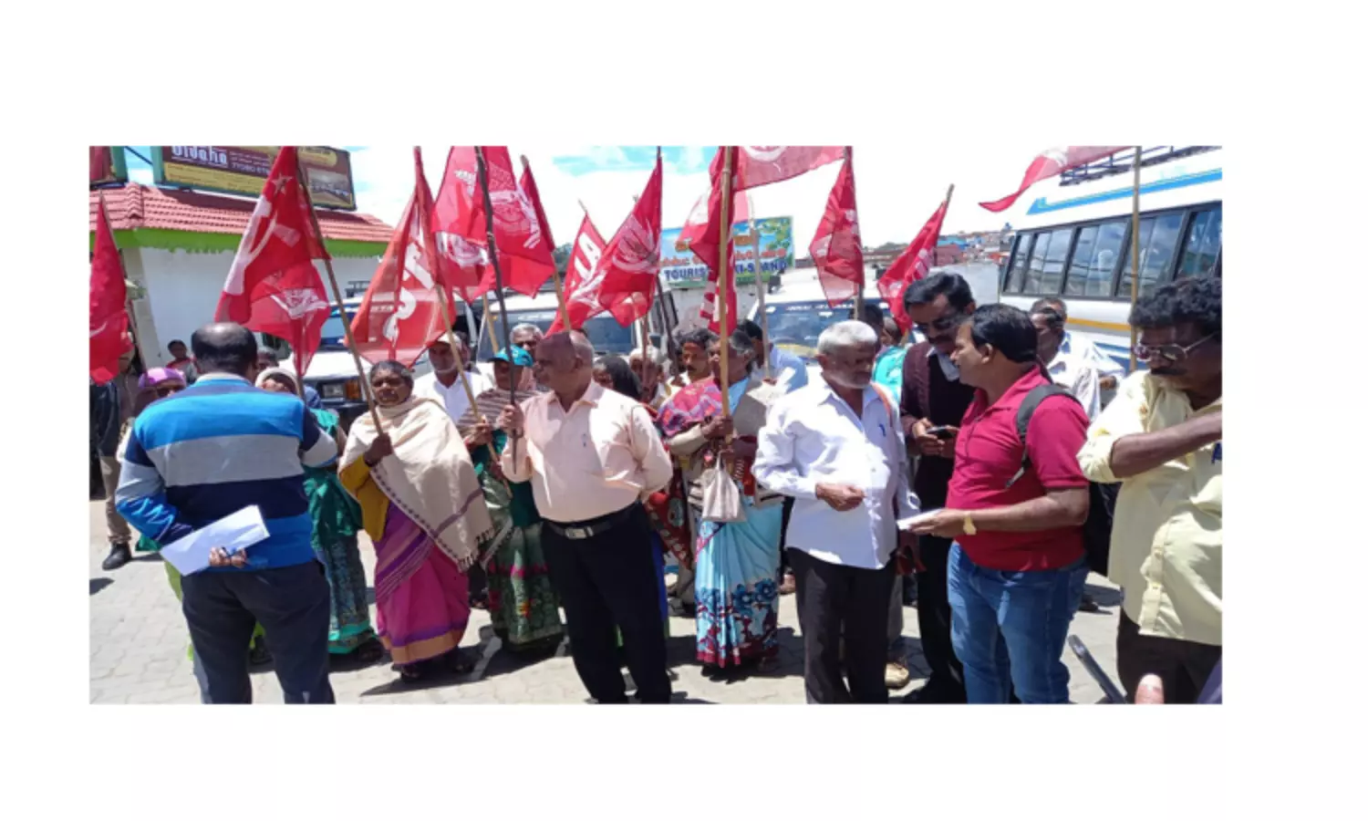 ஆர்ப்பாட்டத்தில் ஈடுபட்ட இந்திய கம்யூனிஸ்டு கட்சியினரை படத்தில் காணலாம்.