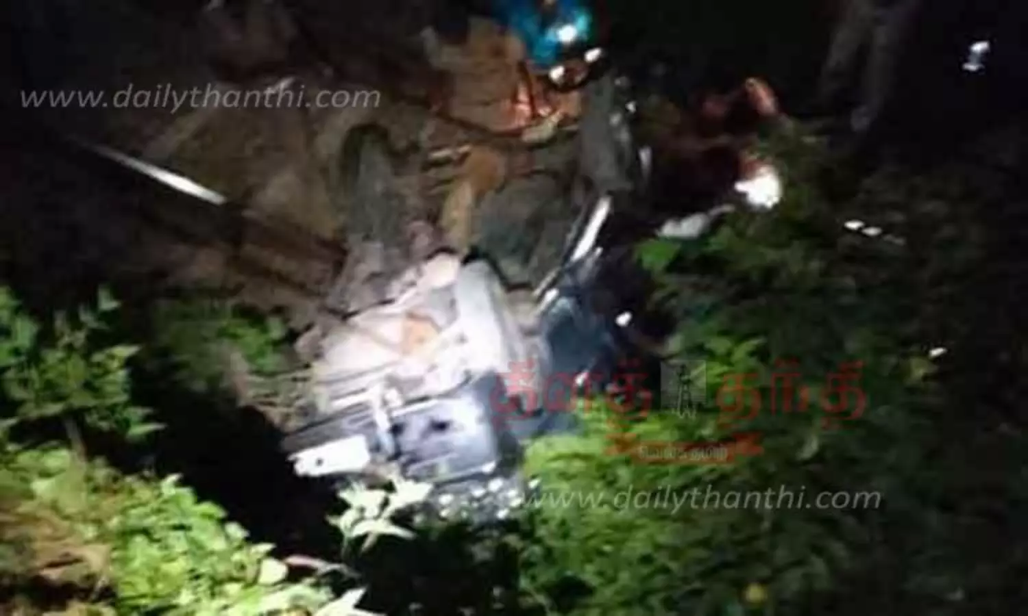இந்த கார் நேற்று இரவு நெய்யூர் அருகே ெரயில்வே மேம்பாலத்தில் செல்ல முயன்ற போது திடீரென கட்டுப்பாட்டை இழந்து சாலையோரமுள்ள 25 அடி ஆழமுள்ள பள்ளத்திற்குள் பாய்ந்தது. இதனை கவனித்த பொதுமக்கள் ஓடி வந்து மீட்க முயன்றனர். கார் தண்டவாளத்தில் கிடந்தது. அந்த சமயத்தில் நாகர்கோவில் நோக்கி பரசுராம் எக்ஸ்பிரஸ் ரெயில் ஒன்று வந்தது.