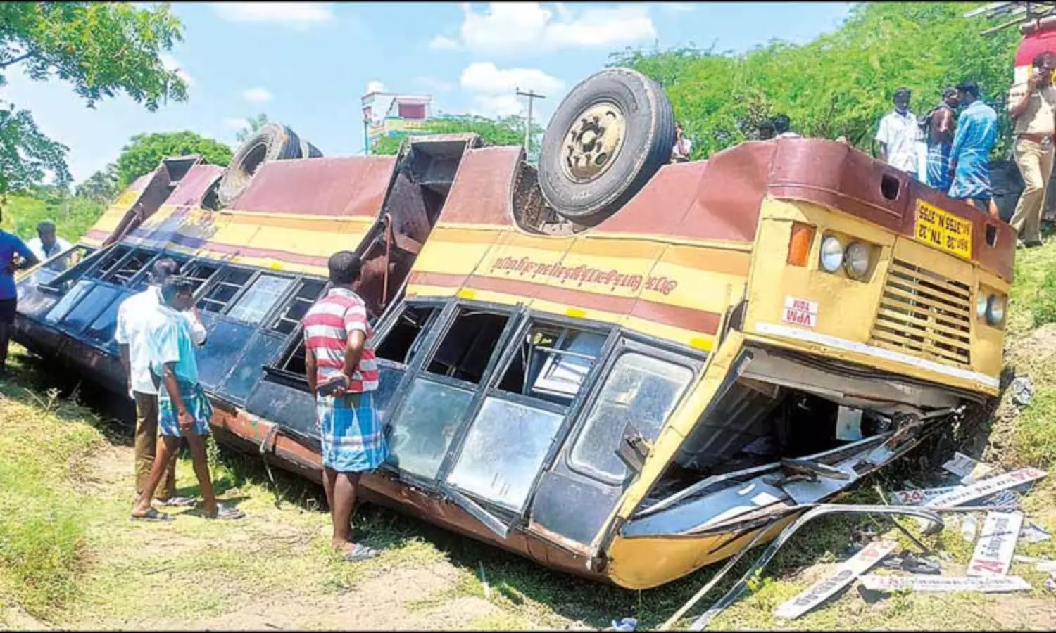 பஸ் தலைகுப்புற கவிழ்ந்து 34 பேர் படுகாயம்