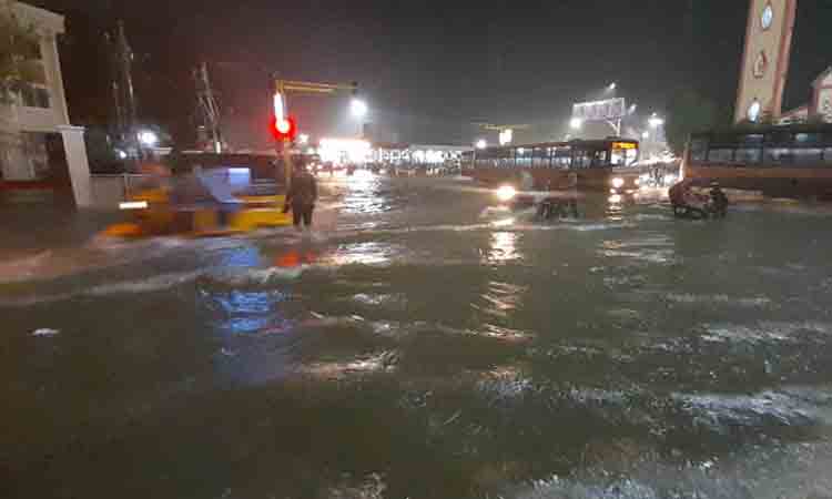 மதுரையில் நேற்று மாலையில் தொடங்கி கனமழை கொட்டியது. 4 பேர் பலியானார்கள். போக்குவரத்து நெரிசலால் நகரமே ஸ்தம்பித்து போனது.