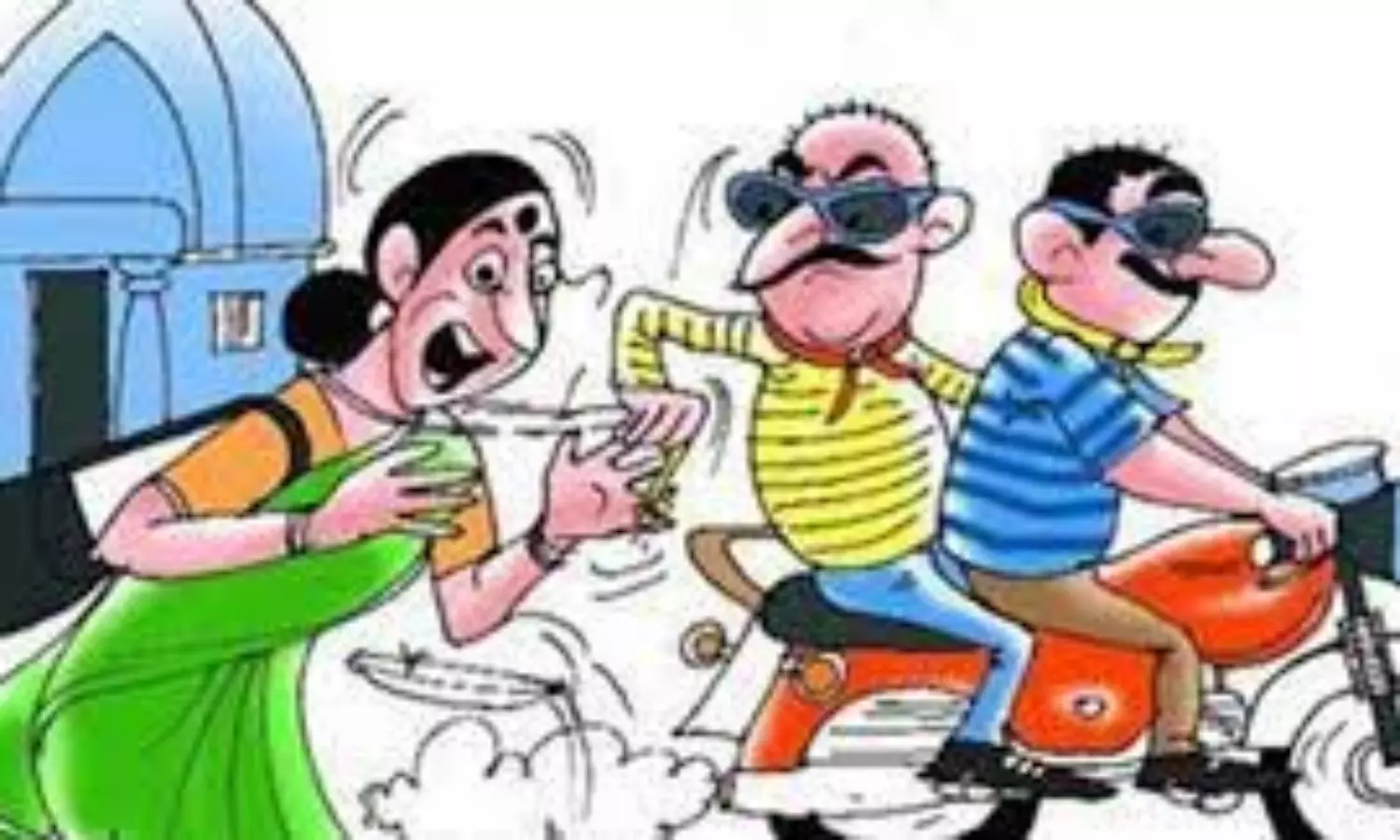 அருகில் வந்ததும் மோட்டார் சைக்கிளில் பின்னால் அமர்ந்திருந்த நபர் பிருந்தாவின் கழுத்தில் கிடந்த 4½ பவுன் தங்க சங்கிலியை வெடுக்கென பறித்தார். இதனால் அவர் திருடன் திருடன் என கூச்சலிட்டார். அக்கம் பக்கத்தினர் ஓடி வருவதற்குள் மர்ம நபர்கள் 2 பேரும் அங்கிருந்து மின்னல் வேகத்தில் தப்பிச்சென்றனர். இதைத்தொடர்ந்து பிருந்தா இதுகுறித்து ஈரோடு வீரப்பன்சத்திரம் போலீசில் புகார் செய்தார். அதன் பேரில் போலீசார் வழக்குப்பதிவு செய்து, தங்க சங்கிலியை பறித்து சென்ற மர்ம நபர்கள் 2 பேரையும் வலைவீசி தேடி வருகிறார்கள்.