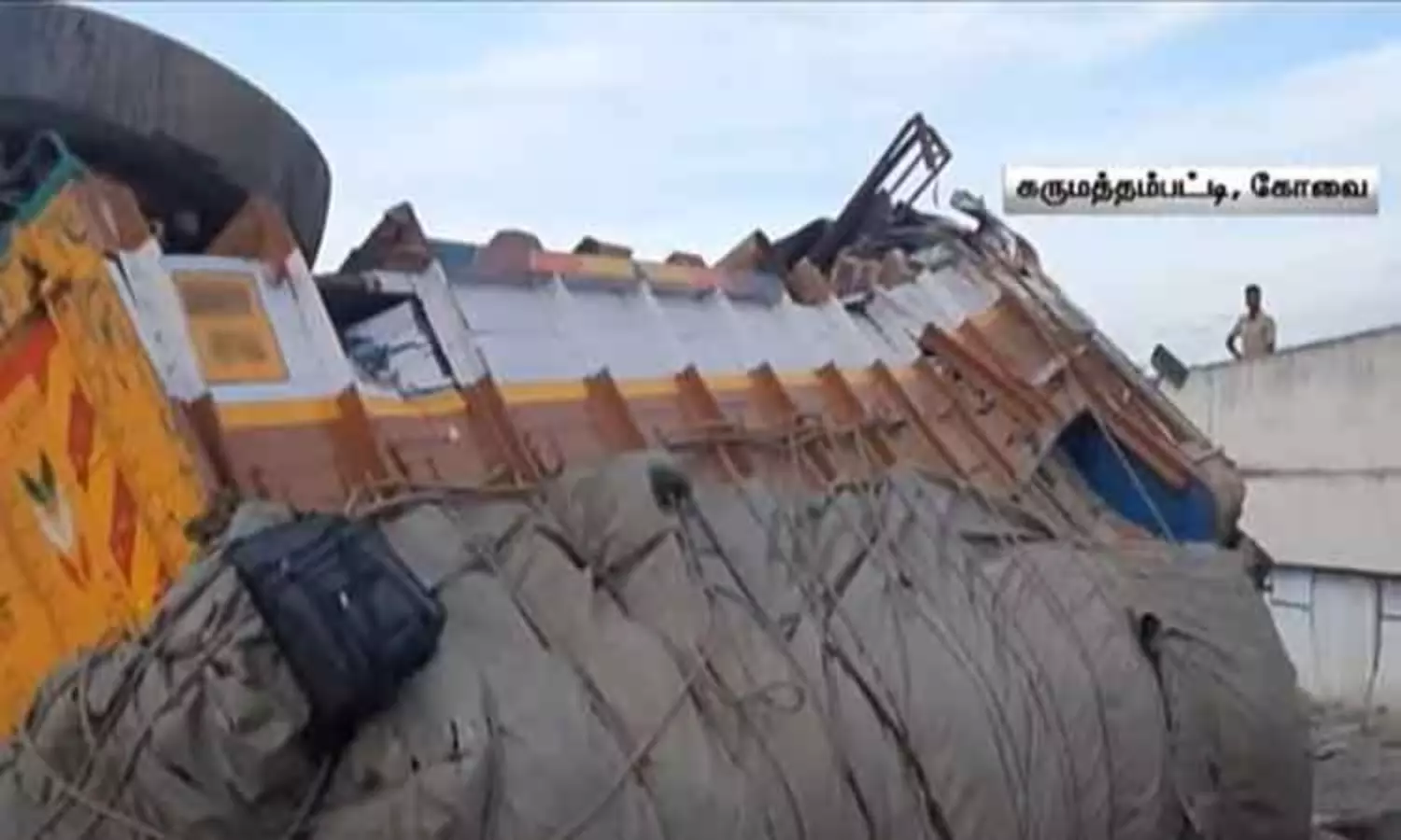 கோவை மாவட்டம் சூலூர் அருகே கருமத்தம்பட்டியில் உள்ள கொச்சின் பைபாஸ் சாலையில், பூந்தமல்லியில் இருந்து பீலமேடு பகுதிக்கு மதுபாட்டில்களை ஏற்றிக் கொண்டு சென்ற லாரி ஒன்று, இன்று அதிகாலை 4 மணியளவில் ஓட்டுநரின் கட்டுப்பாட்டை இழந்து சாலையோரம் தலைகீழாக கவிழ்ந்தது.