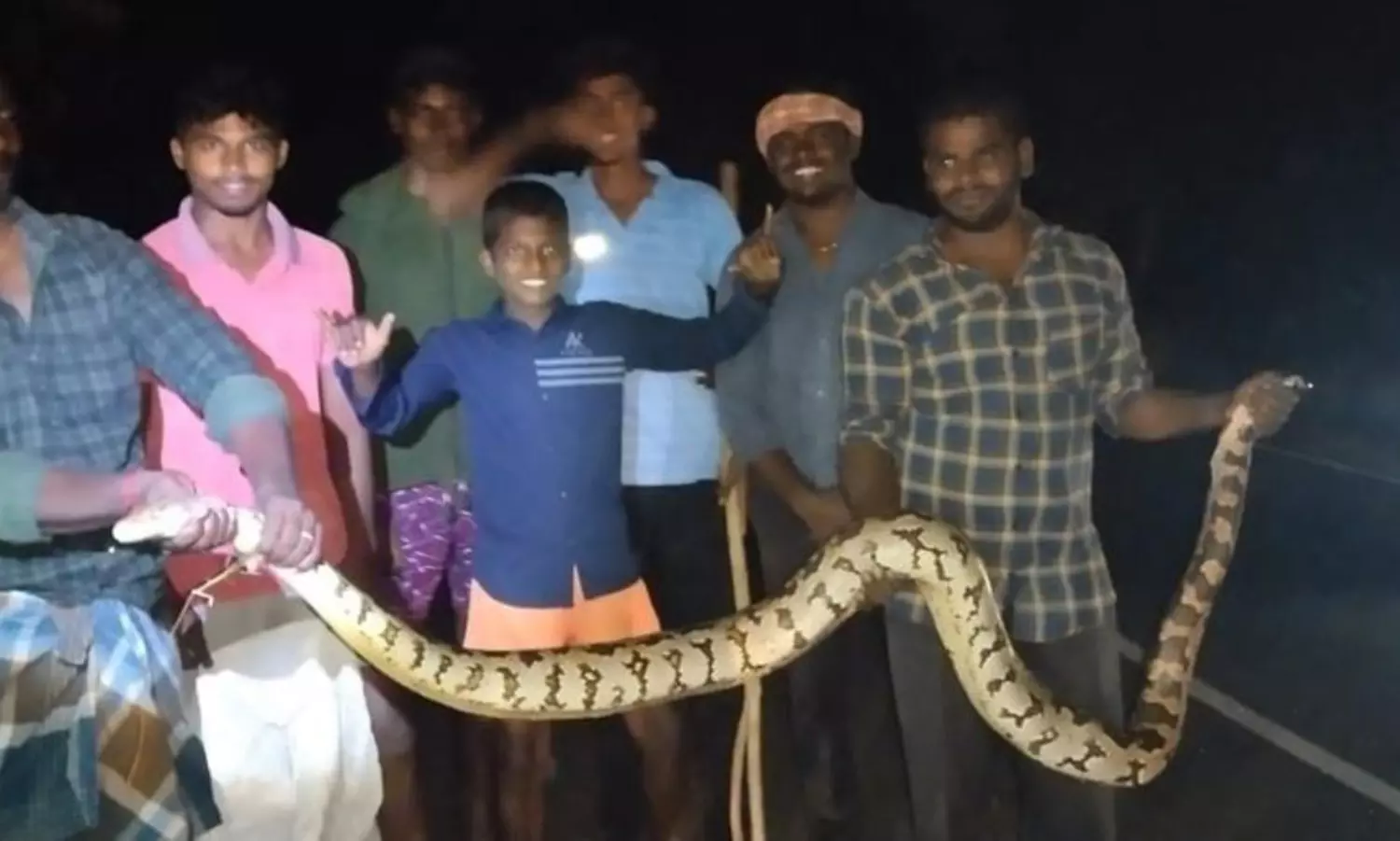 10 அடி நீளமுள்ள மலைப்பாம்பு பிடிபட்டது
