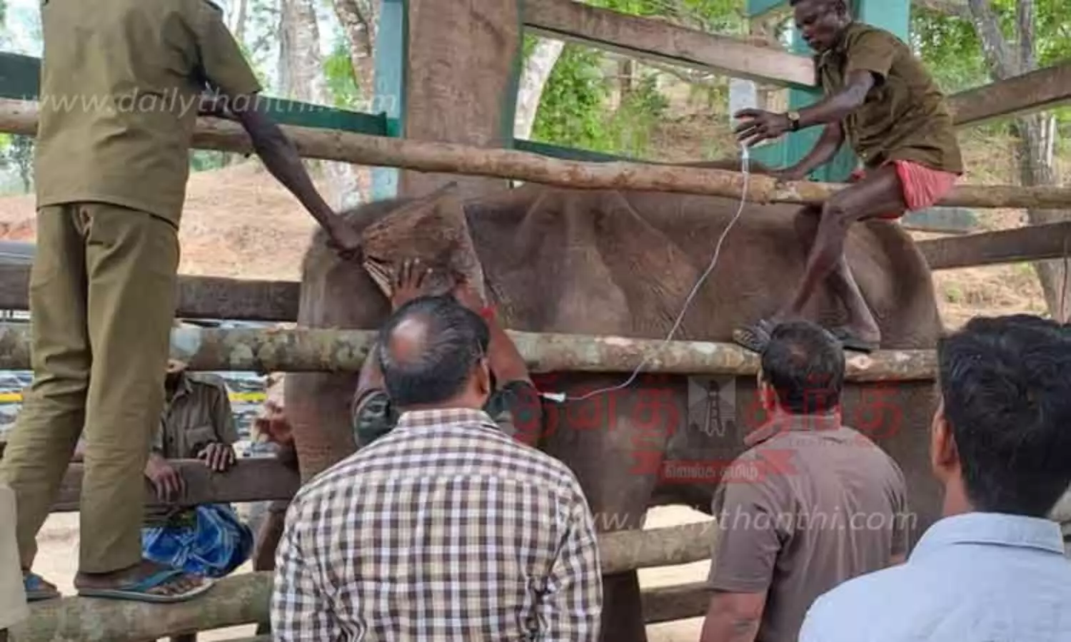 வாயில் காயம் ஏற்பட்ட யானை மேல்சிகிச்சைக்காக டாப்சிலிப் வரகளியாறு முகாமிற்கு கொண்டு வரப்பட்டு உள்ளது. யானையால் சாப்பிட முடியாததால் உடல் சோர்வு ஏற்படாமல் இருக்க குளுக்கோஸ் செலுத்தப்படுகிறது. ஆனைமலை புலிகள் காப்பக கள இயக்குனர் ராமசுப்பிரமணியம் அறிவுறுத்தலின் பேரில் டாக்டர்கள் விஜயராகவன், சுகுமாரன், சதாசிவம் ஆகியோர் கொண்ட மருத்துவ குழுவினர் யானைக்கு சிகிச்சை அளித்து வருகின்றனர்.
