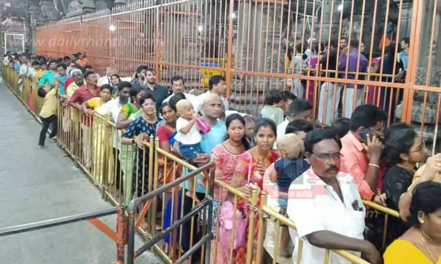 பக்தர்கள் பொது மற்றும் கட்டண தரிசன வழியில் நீண்ட வரிசையில் நின்று சாமி தாிசனம் செய்தனர்.