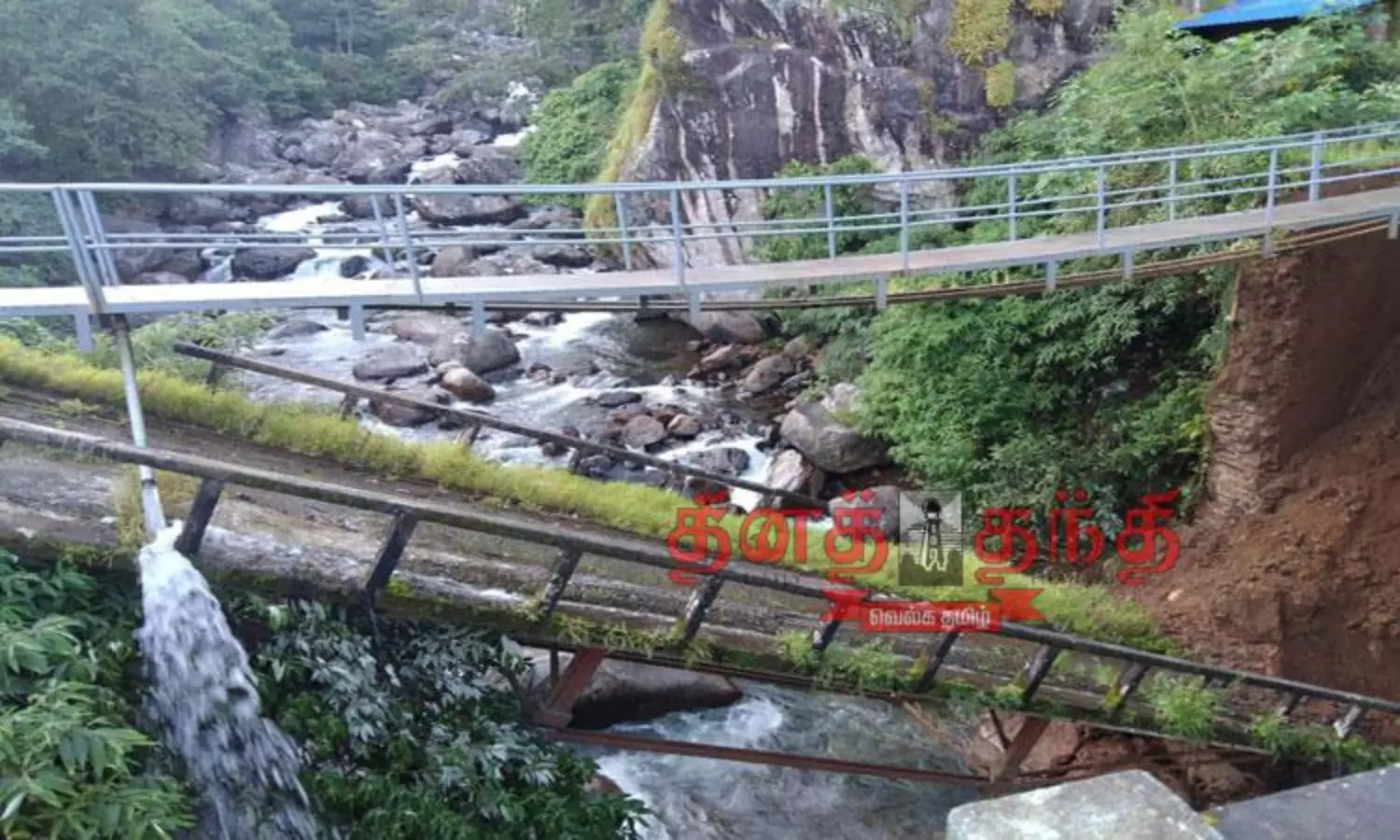 தகவல் அறிந்த தாசில்தார் சித்தராஜ், பேரூராட்சி செயல் அலுவலர் ஹரிதாஸ், பேரூராட்சி தலைவர் சித்ராதேவி மற்றும் கவுன்சிலர்கள் விரைந்து வந்து பார்வையிட்டனர். தொடர்ந்து முன்னெச்சரிக்கை நடவடிக்கையாக ஆற்றின் கரையோரம் வசிக்கும் மூன்று குடும்பங்களை தற்காலிகமாக வேறு இடத்துக்கு மாற்றி தங்க வைத்தனர். இதேபோல் தோட்ட தொழிலாளர் குடும்பத்தினர் வேறு பாதையை பயன்படுத்த அதிகாரிகள் உத்தரவிட்டுள்ளனர்.